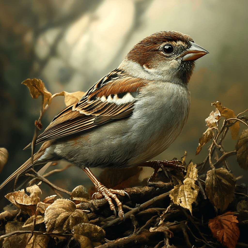 Sparrow: Sparrows are small, unremarkable birds with brown, streaked feathers that help them blend into their environment. While they may seem plain, sparrows are lively and social, often seen hopping around in search of seeds. Their simple, cheerful chirps create a familiar soundtrack in both rural and urban areas.